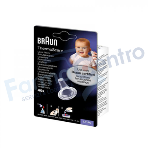 Descrizione Per un monitoraggio preciso e più igienico della temperatura. La sostituzione dei tappi igienici dopo ogni utilizzo garantisce la pulizia senza deposito di cerume e sporcizia, che potrebbero intasare il sensore. Se cambiati dopo ogni utilizzo, i tappi igienici usa e getta Braun aiutano a proteggere dalle contaminazioni incrociate. I Hygiene caps possono essere usati con tutti i modelli di termometri auricolari Braun ThermoScan IRT. Modalità d'uso 1) Posizionare un nuovo copri lente sulla punta del termometro prima di ogni misurazione. 2) Misurare la temperatura con il copri lente posizionato sulla punta del termometro. 3) Eliminare il copri lente usato dopo ogni misurazione. Espellerlo premendo il pulsante sotto la punta del termometro. Formato Confezione da 40 pezzi. Cod. LF40EULA01